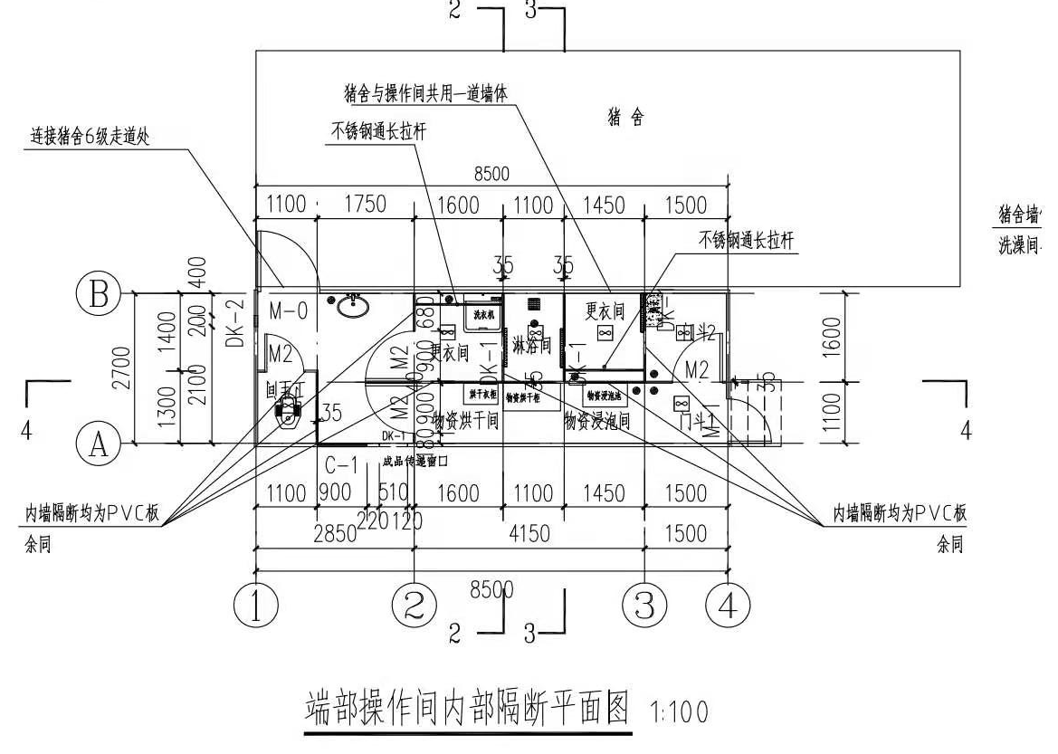 駐馬店牧原集團(tuán)養(yǎng)殖場(chǎng)工作間冬季供暖系統(tǒng),豬舍工作人員更衣室、洗漱間、物資烘干間等均采用