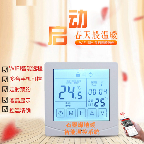 葉縣石墨烯地暖智能溫控系統(tǒng),可以通過手機APPWiFi遠程控制調(diào)溫,可以多臺手機共同控制家里溫度調(diào)整