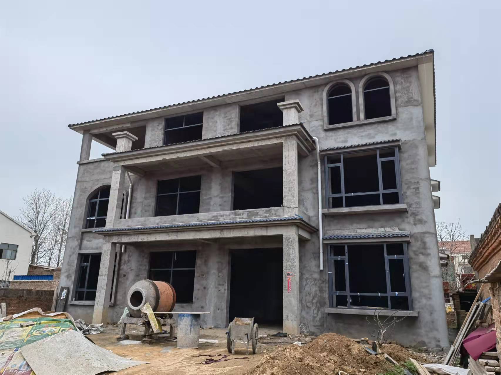 滑縣瓦崗寨農村自建房,結構三層,單層建筑面積200平方米左右,進深12米,整體建筑面積500平方米左右