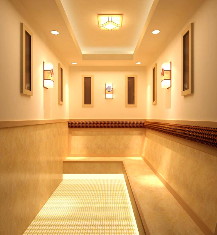 不但在汗蒸房地面鋪設(shè)石墨烯電地暖,還需要在四周墻壁及頂部均全包圍安裝封裝防水耐高溫的石墨烯屏蔽電熱膜產(chǎn)品